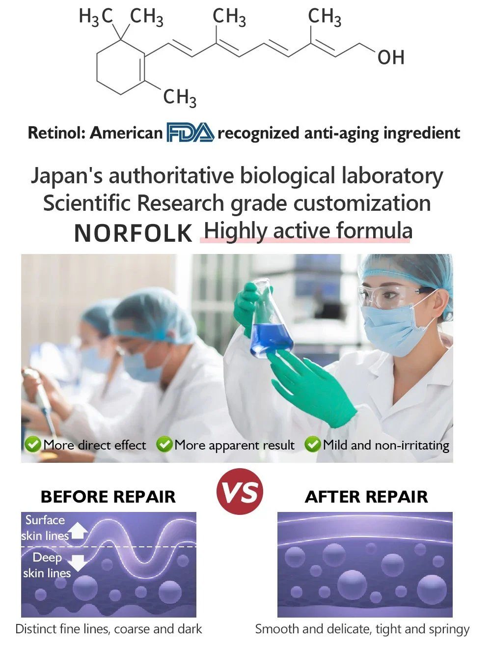 - Penetrates the layers of the skin to increase collagen production, elastic fibrillin production which helps to tighten the skin, reduce wrinkles, fine lines, eye bags etc.