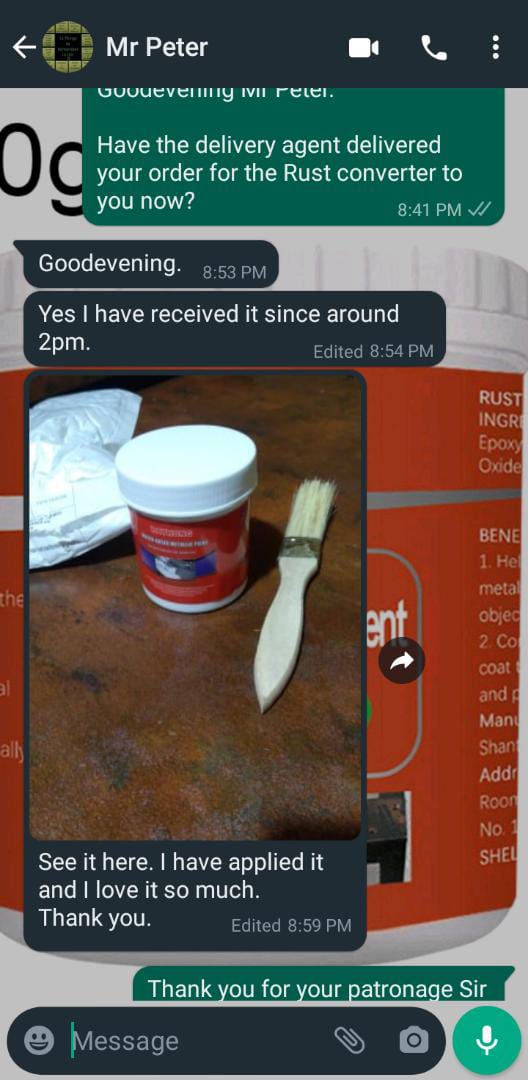 Don’t worry! Our Water-based Metal Rust Remover will help you solve the problem easily. It is the easiest-to-apply, fastest drying rust converter. It will dry within 10 minutes after brushing.