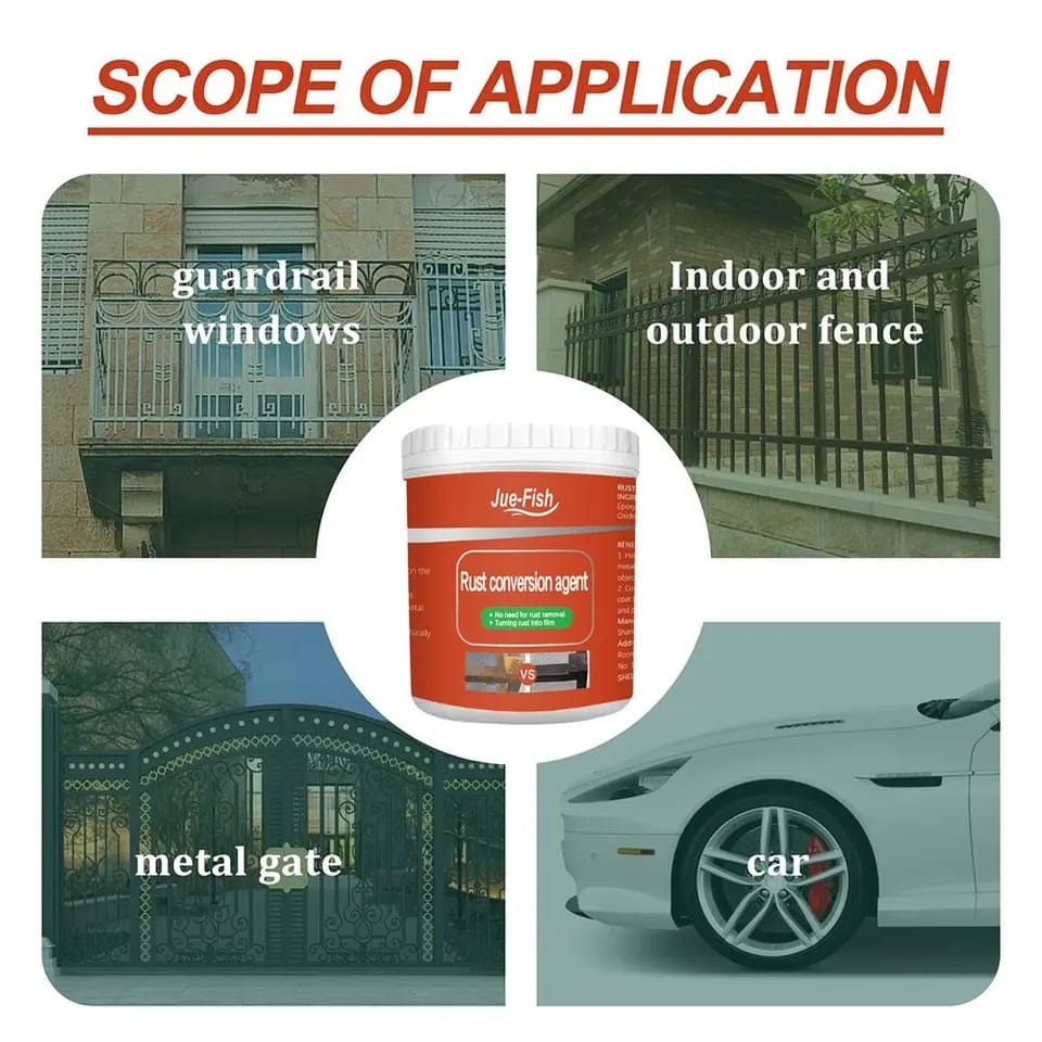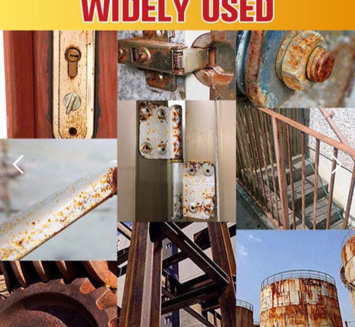 It can quickly and easily remove rust and restore the original primer color of metal objects. It revives and protects iron and metal surfaces on automobiles, car chassis, dumpsters, equipment, railings, chains, etc.